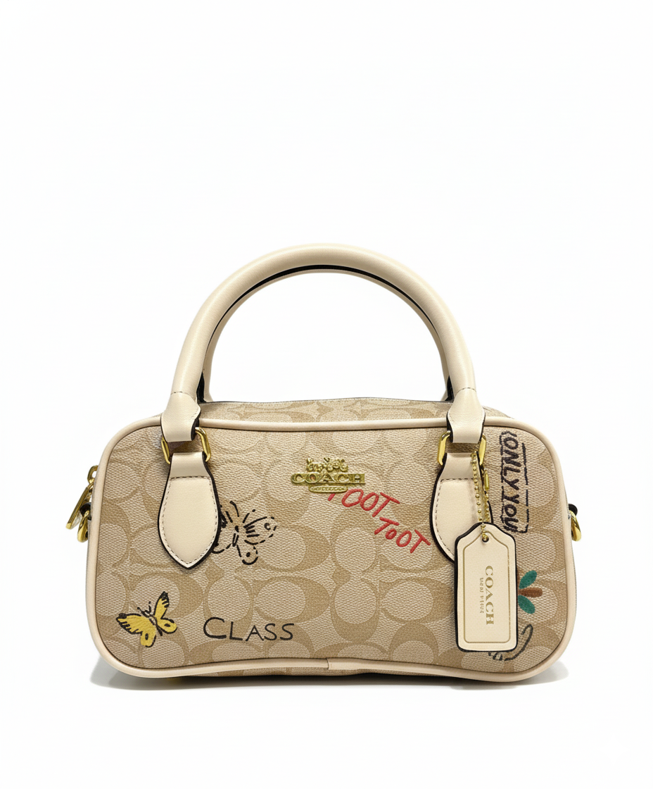 Arte Urbano y Lujo en una Silueta Icónica. El Bolso Mini Butterfly Light se transforma en una pieza de colección con esta edición especial. No es solo un bolso; es un lienzo que combina el monograma clásico de la marca con bordados de mariposas y detalles de graffiti «estilo libre» que le inyectan una energía joven, rebelde y sumamente chic. Su forma de baúl compacto es perfecta para quienes buscan un accesorio con estructura, historia y un toque de arte callejero de lujo.